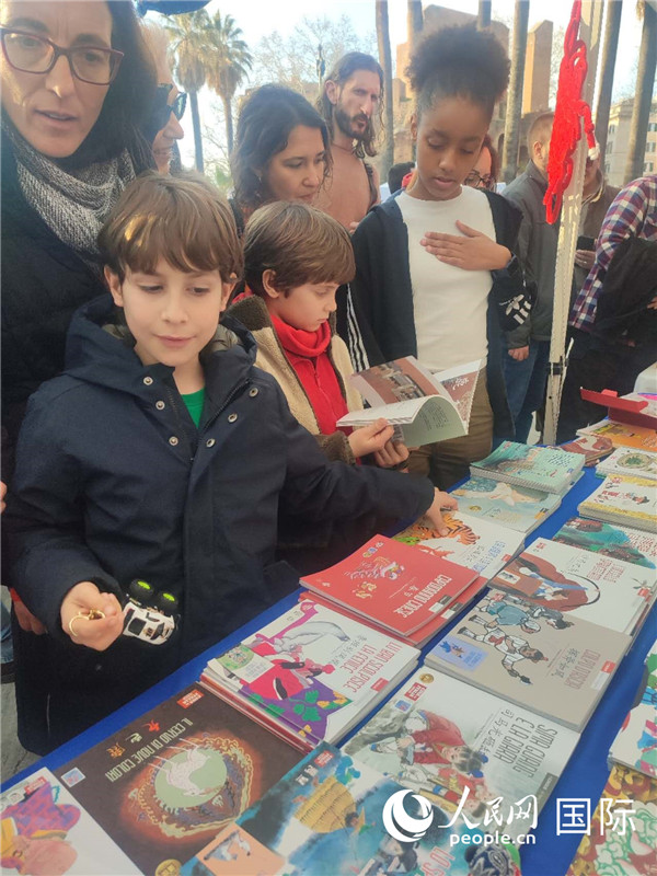 印刷精美的中国传统文化丛书吸引了小游客的注意。记者 郑彬 摄 伴随着《盛世欢歌》的欢快节奏,精彩纷呈的文艺表演拉开了帷幕,曼妙蹁跹的唐宫舞蹈、雍容华丽的汉服展示,仿佛把人们带回了汉唐盛世;优雅婉转的古琴二胡,与激情四溢的西洋乐器遥相呼应,让人们领略到东西方艺术融合的独特魅力。整台演出精彩纷呈、高潮迭起,赢得在场观众的阵阵掌声和欢呼。在随后的游园活动中,来自当地的民众在美食、茶艺、音乐、书法等充满中国元素的欢庆氛围中流连徜徉,尽情领略着中华传统文化的魅力与精彩。