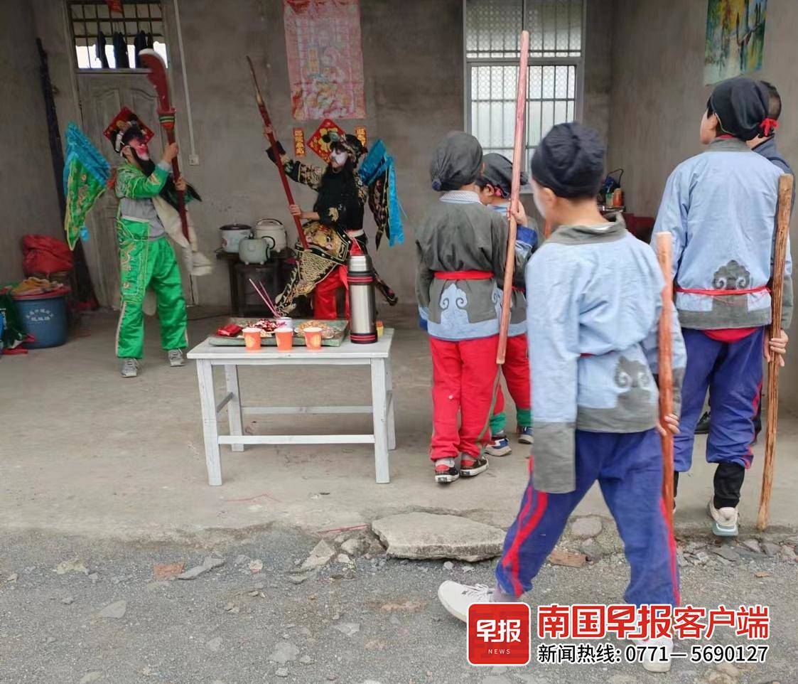 社火队员在村民家中表演。受访者供图 村民伍胜龙是这次活动的组织者之一。他说,活动将持续两天,2月20日凌晨4时左右,大伙就起床准备道具、服装、化妆等事宜。之所以选择青少年组成社火队,是为了让村里的青少年学习历史名人清正廉明、忠勇爱国的事迹,传承和发扬老祖宗传承下来的民俗文化。 据悉,2022年,全州县已将“打社火”申报为非物质文化遗产。记者从桂林市文化广电和旅游局公示的第七批市级非物质文化遗产代表性项目上看到,“打社火”榜上有名。 |