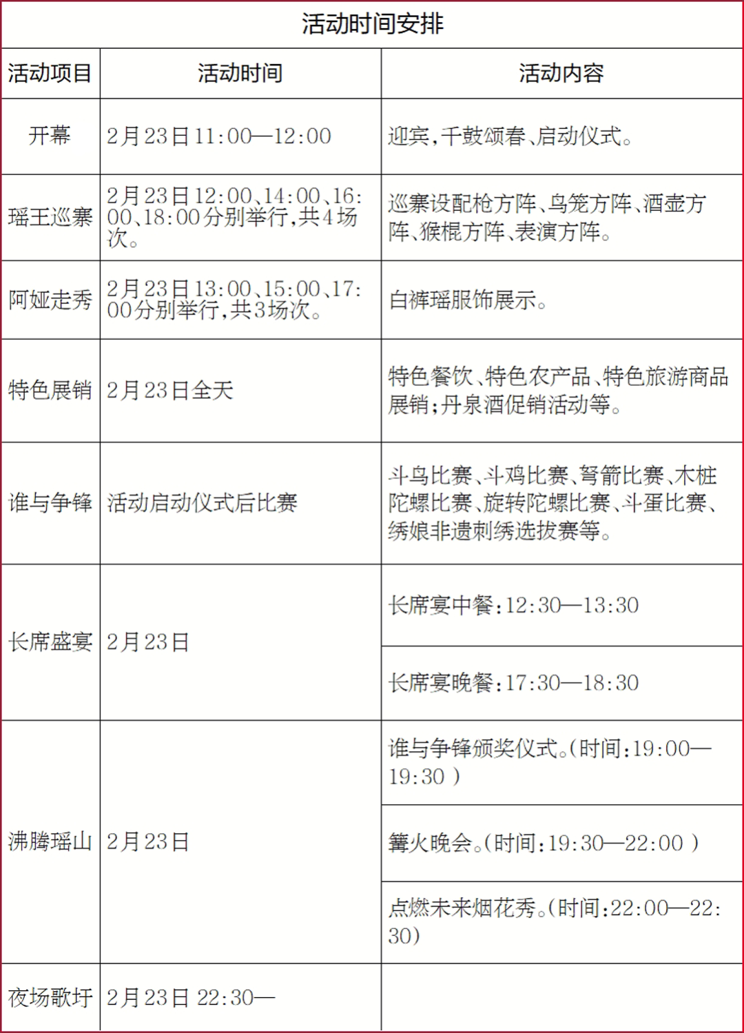 神秘的“瑶王巡寨” 古朴的“阿娅走秀” 激烈的“谁与争锋” 热闹的“长席盛宴” 系列活动精彩纷呈