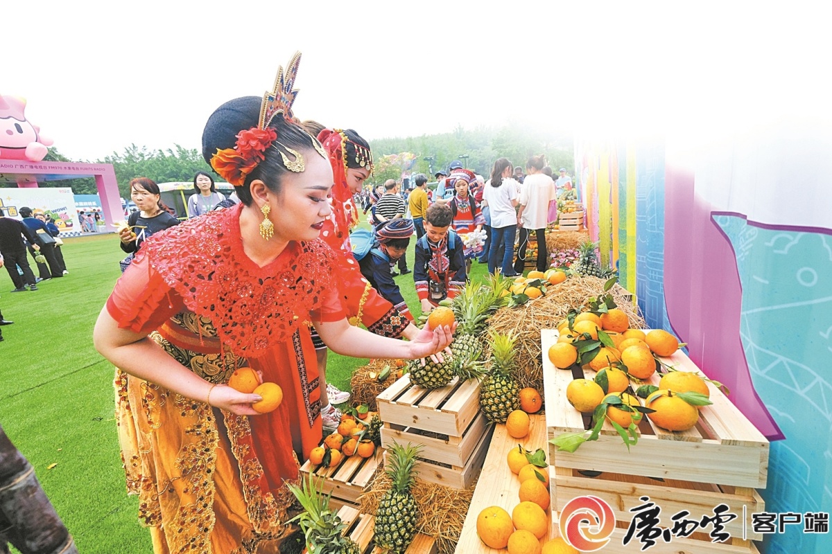 东盟国家演员品尝广西水果。
