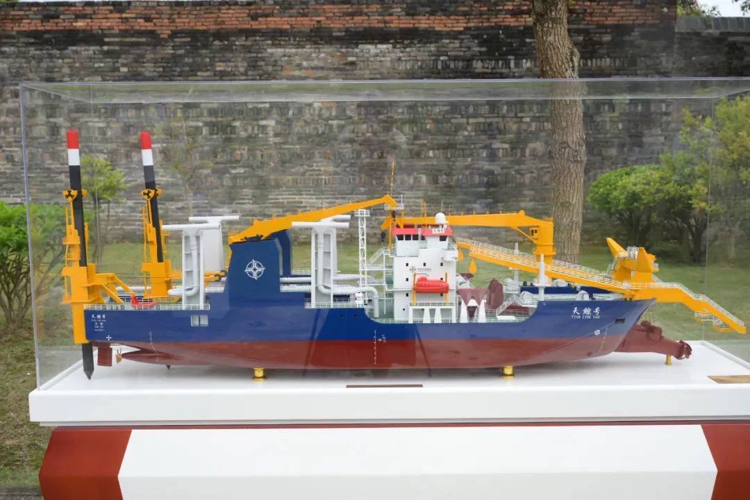 “天鲸号”模型。 2010年正式投产的“天鲸号”是亚洲第一、世界第三强的自航绞吸式挖泥船,具备“挖得快、吹得远、立得稳、智能化、能自航”等多项硬实力。自去年8月底投入平陆运河建设以来,“天鲸号”充分发挥自身在海洋领域的专业优势,快速打开入海口段施工作业面,破解施工海域土质复杂、疏浚土运输距离长、工期紧等难题,在提高施工质量、生产效率的同时增大工程安全系数,助推平陆运河建设成为优质工程、绿色工程、廉洁工程。