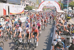 记者5月14日从“环广西”组委会办公室获悉,环广西公路自行车世界巡回赛2024—2025年比赛线路已完成初步规划,国际自行车联盟官员对该线路进行考察后给予了高度认可并出具考察报告。图为2023年环广西公路自行车世界巡回赛桂林绕城赛段开赛瞬间。记者 周军 摄(广西新闻网-广西日报)