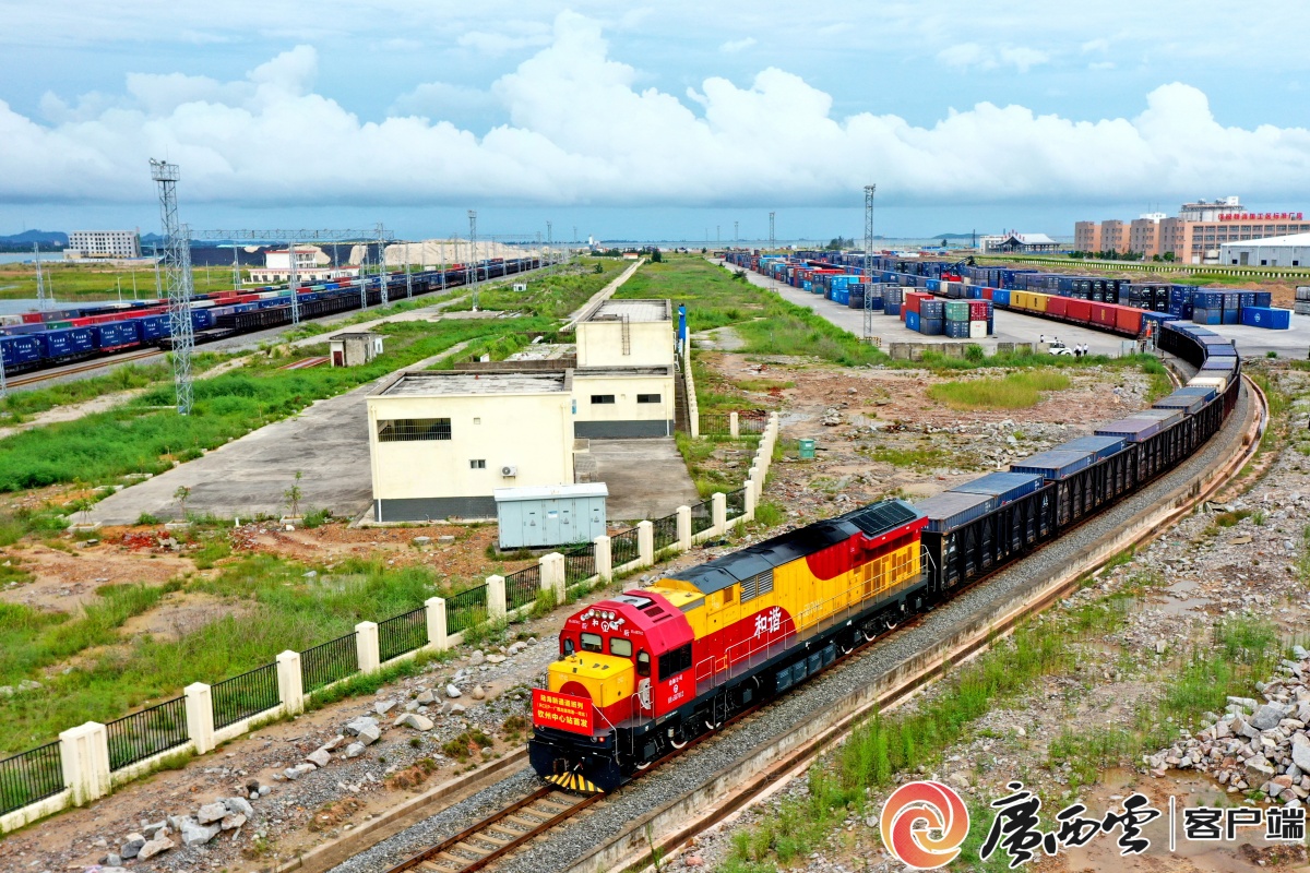 “RCEP—北部湾港—河北”海铁联运班列从钦州铁路集装箱中心站发车,标志着西部陆海新通道海铁联运班列运行范围首次延伸至华北地区。赵冠雄 摄