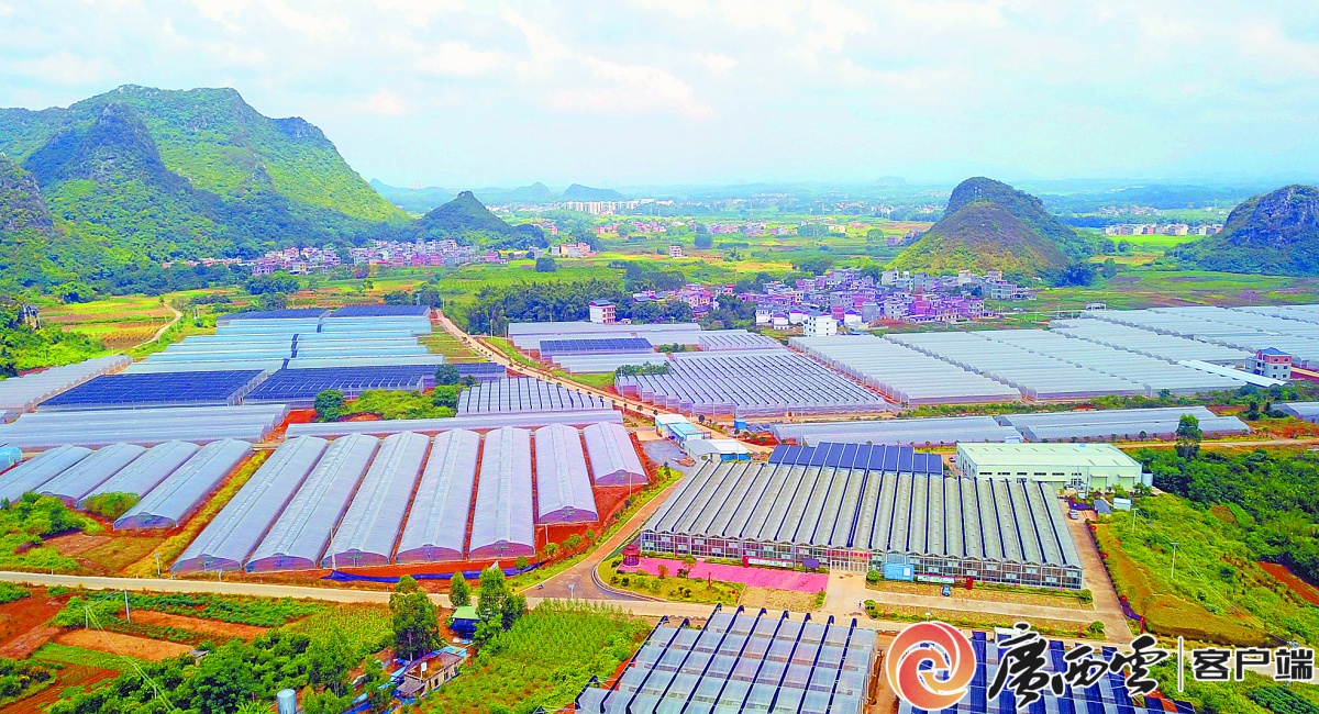 贺州市平桂区羊头镇一处蔬菜种植基地,连绵成片的农膜大棚蔚为壮观。近年来,该市致力提升特色农业现代化水平,全力打造粤港澳大湾区菜篮子基地。廖祖平 摄