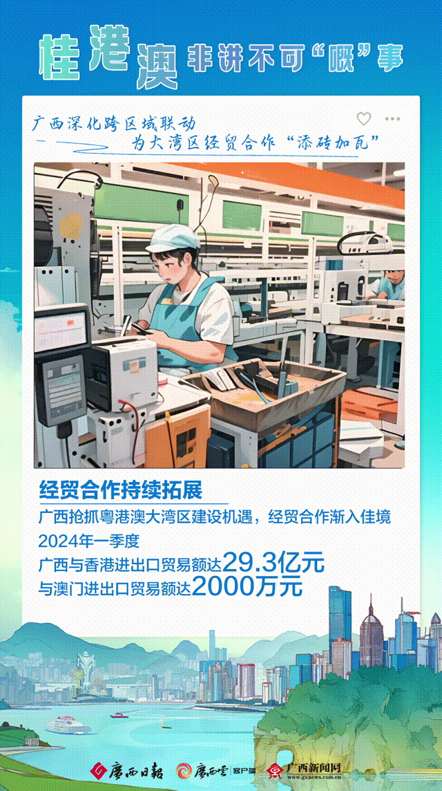 新闻眼同饮一江水,邻里情谊深。广西与港澳地缘相近、语言相通、习俗相同、优势互补。近年来,桂港澳互动频繁,合作全面展开,成效显著。广西日报-广西云深入挖掘广西与港澳之间交流合作的亮点故事,推出《桂港澳非讲不可“嘅”事》系列融媒报道,通过AI技术绘出广西与港澳之间不得不说的那些事儿。