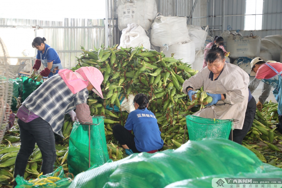 农户正在将甜玉米打包上市。黄桂兰 摄