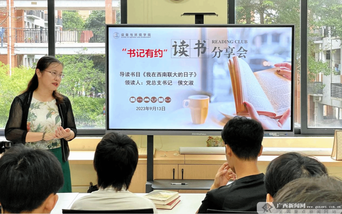 “书记有约”社区读书分享会。学校供图 师生共读——书香育人“活+雅” 在学校发展战略和读者需求牵引下,针对学生心理发展、精神成长、价值取向、审美意趣等追求,以规范内容和丰富形式引导师生爱读书、读好书、善读书。主要开展形式有:爱读书——“阅读马拉松”21天助力学生培养阅读习惯、“悦读之星”在馆阅读、“阅读漂流”发挥场域、朋辈效应,营造良好阅读氛围;读好书——“辅导员荐读”“馆主领读”“青年荐读”以多元分层领读模式带动学生阅读经典;善读书——“梦想朗读者”“同读一本书”读出坚定信仰、读出良好作风、读出本领担当,“悦读之旅·书香假期”将书香从校内延伸至校外。