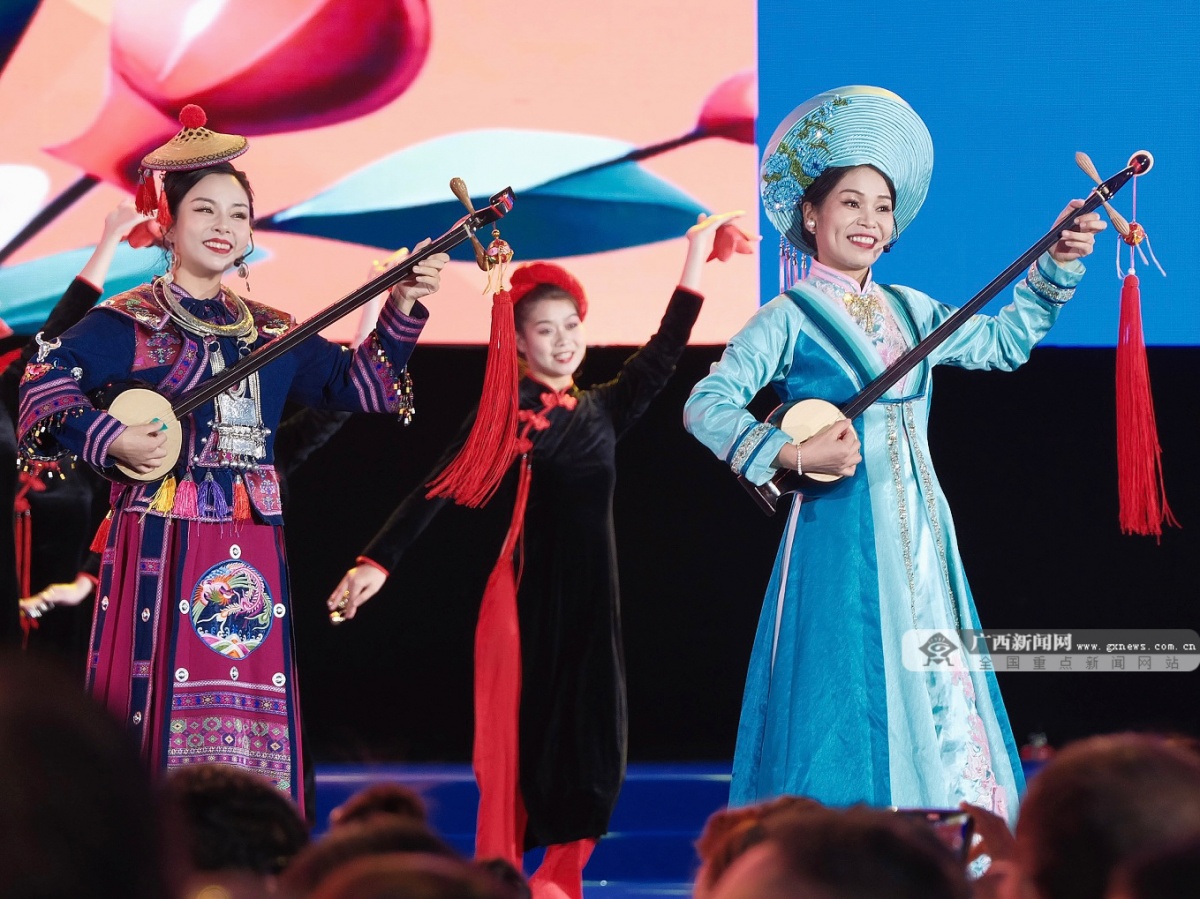 国家级非物质文化遗产名录之一——壮族天琴艺术表演。广西文化和旅游厅供图 国家级非物质文化遗产名录之一——壮族天琴艺术表演是节目的一大亮点。节目通过独特的琴音、动听的旋律、深情的歌词、欢快的舞蹈,表达广西人民多姿多彩的幸福生活,也传递了各族人民团结友爱、欣欣向荣、共创未来的美好愿景。 据了解,《民族团结花盛开》节目由国家一级作曲家傅滔精心改编,广西文化旅游推广大使银悦西及广西民族原生态歌手组合梢丽组合倾情演绎,崇左市群众艺术馆、崇左幼儿师范高等专科学校、崇左市花山民族文化艺术传承创作中心等单位精彩伴舞,展示了广西多民族文化的独特魅力。该节目除了在8月20日的开幕式进行演出外,还分别于21日、22日、23日在乌鲁木齐市、石河子市等地进行展演。