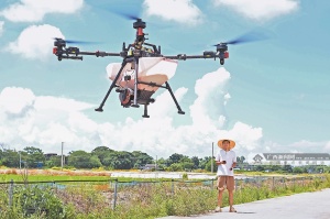 8月27日,在合浦县党江镇亚桥村高标准农田,农技人员利用无人机高效施肥。眼下正是晚稻管护关键时期,该县积极引入自动化设备助农生产,既省时省力,又提高了经济效益。林启波 摄(广西云-广西日报)