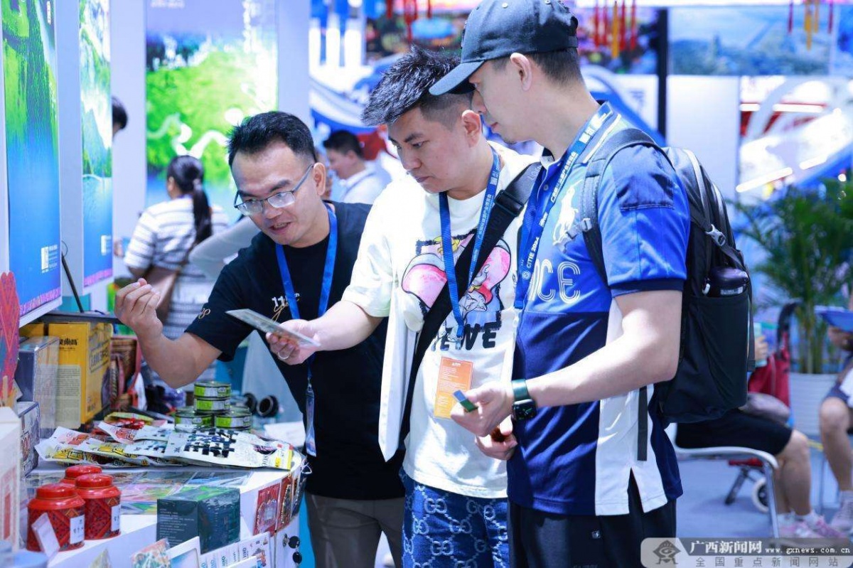 现场展出的广西特色产品成为吸引游客注意的焦点。广西壮族自治区文化和旅游厅供图 在广西展馆内,一系列丰富多彩的特色产品成为吸引游客眼球的焦点。从博物馆的文创潮品到地道的广西美食、手工艺品,这里应有尽有。南宁的茉莉花系列、柳州的螺蛳粉、梧州的六堡茶、钦州的坭兴陶、北海的珍珠等,无不彰显着广西文化的独特韵味和文旅产业的繁荣景象。这些产品不仅吸引了众多参展商的目光,更让游客们流连忘返,纷纷驻足选购,现场洽谈合作氛围热烈,实现了展销两旺的喜人局面。