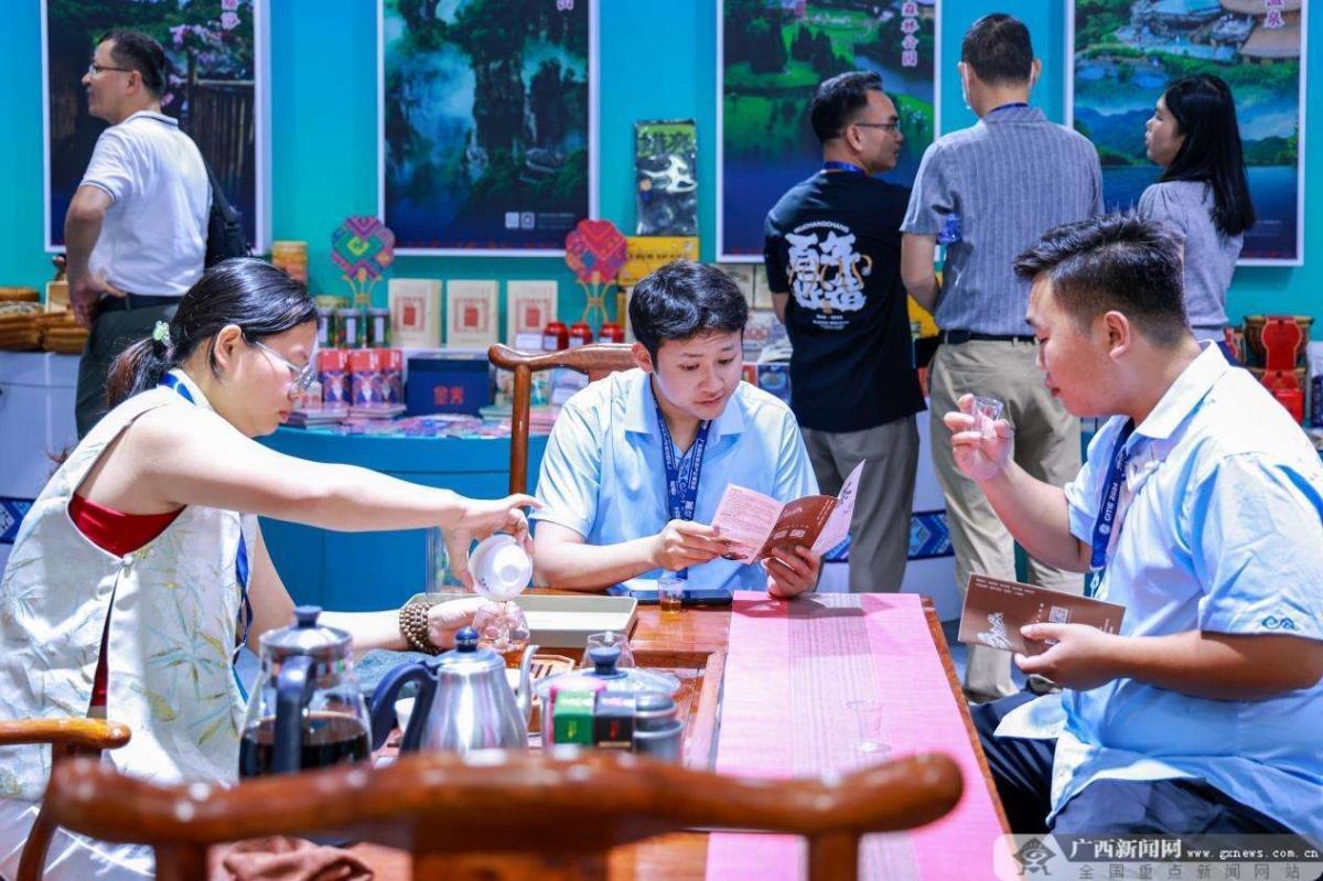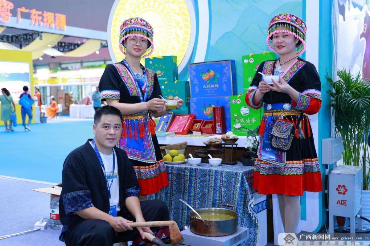 现场展示瑶族油茶习俗。广西壮族自治区文化和旅游厅供图 此外,广西展馆还特别设置了多个互动体验区,成为本次旅博会的亮点之一。游客们不仅近距离观赏并亲手体验被列入联合国教科文组织人类非物质文化遗产代表作名录的“六堡茶制作技艺”和“瑶族油茶习俗”,品味茶香的同时感受传统文化的独特韵味;还参与了趣味横生的互动小游戏,赢取精美礼品。同时,供打卡留念的广西特色印章区也吸引了大量游客参与,现场气氛热烈非凡,欢声笑语不断。