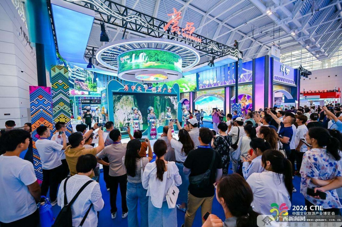 广西新闻网天津9月15日电(通讯员 陈永霜)9月13日至16日,由文化和旅游部主办的2024中国文化旅游产业博览会在国家会展中心举行。广西文旅展区所呈现的特色文旅资源和产品、非遗技艺展演、歌舞表演、网红直播等内容精彩亮相,吸引了大量游客驻足欣赏与热情参与。