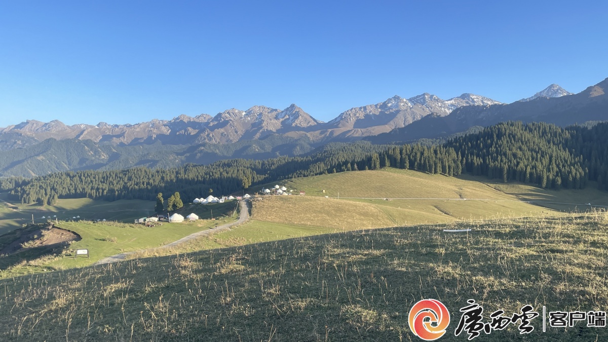 采访结束,一轮皎洁的月亮,高悬在天山之上。万家灯火如繁星点缀在草原各处,欢快的歌声不断从毡房里传出。