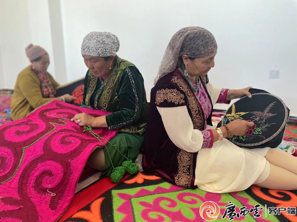 据了解,红旗农场生活着许多哈萨克族职工。2012年,该农场建起一座民族手工艺产业孵化园,为当地各族群众提供了集加工、销售为一体的场地。库拉西在孵化园里成立了刺绣合作社,带领农场的绣娘们一起制作毡绣布绣,实现增收致富。