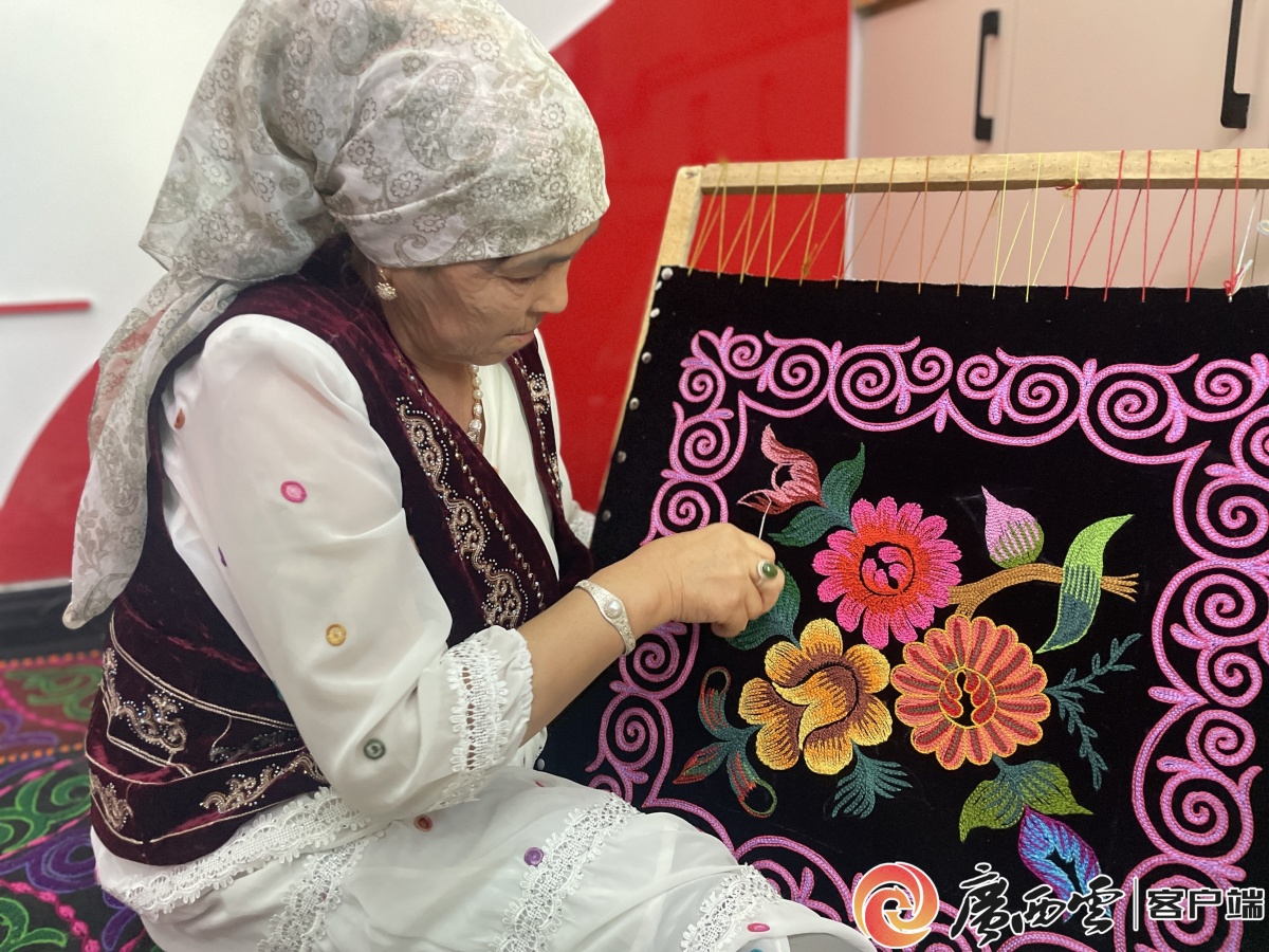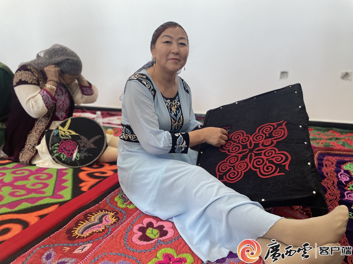 “加入合作社从事刺绣之后,我的生活变得更好了。”54岁的哈萨克族绣娘早拉汗·哈依浦说,在家里就能工作,每月刺绣收入2000元左右。