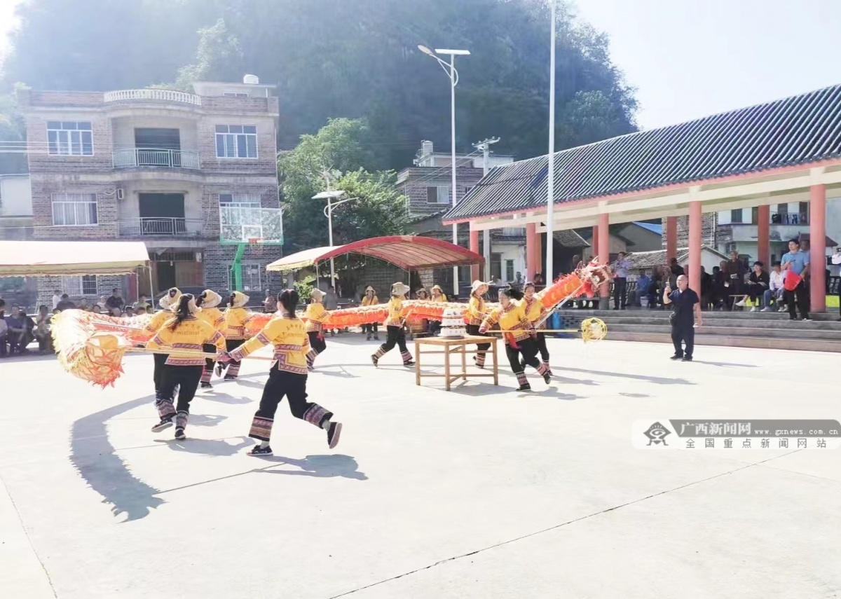 贺州市平桂区女子舞狮队为老人表演传统的舞狮项目。通讯员 唐金声 摄
