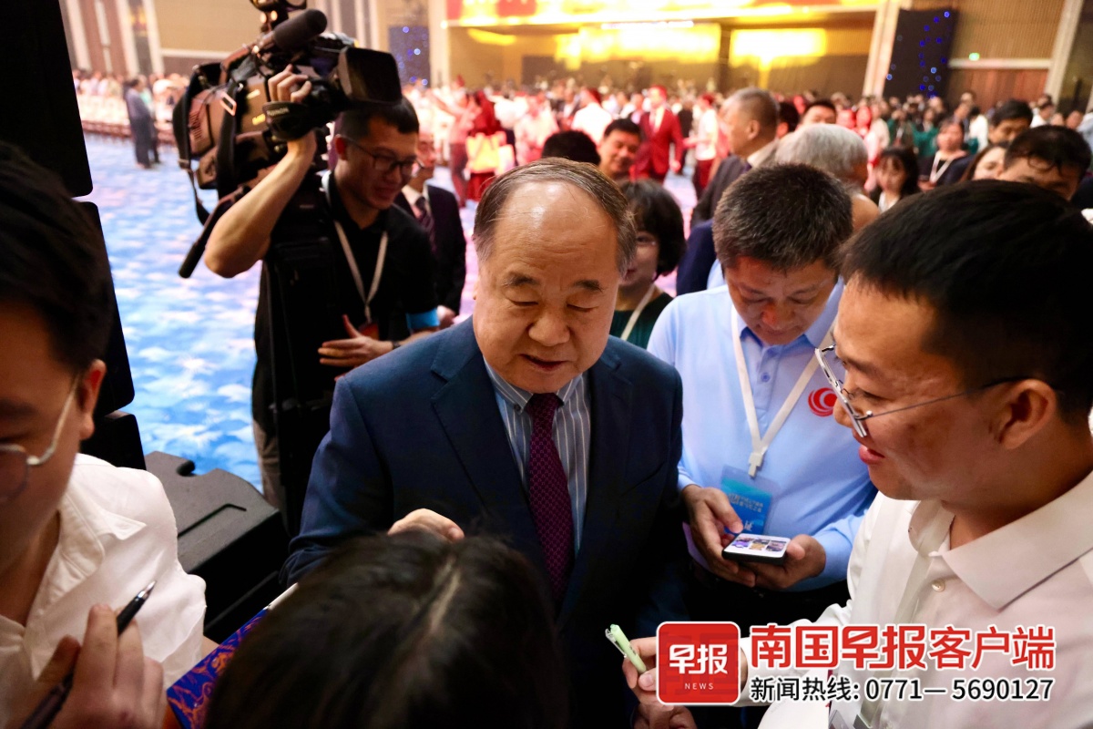 “八桂大地的人民像珠贝一样,用自己生活中的苦和甜酿造出了璀璨的珍珠,形成了各种各样的歌谣和美好的感情,然后变成了美好的生活。”莫言提到,广西文学在中国文坛一直是非常引人注目的存在,如大家熟知的“广西三剑客”——东西、鬼子、李冯,还有凡一平等广西作家,都写出了令整个文坛刮目相看的佳作,而且他们的作品都跟影视有很密切的结合,足以证明广西作家的影响力已经溢出文学界。