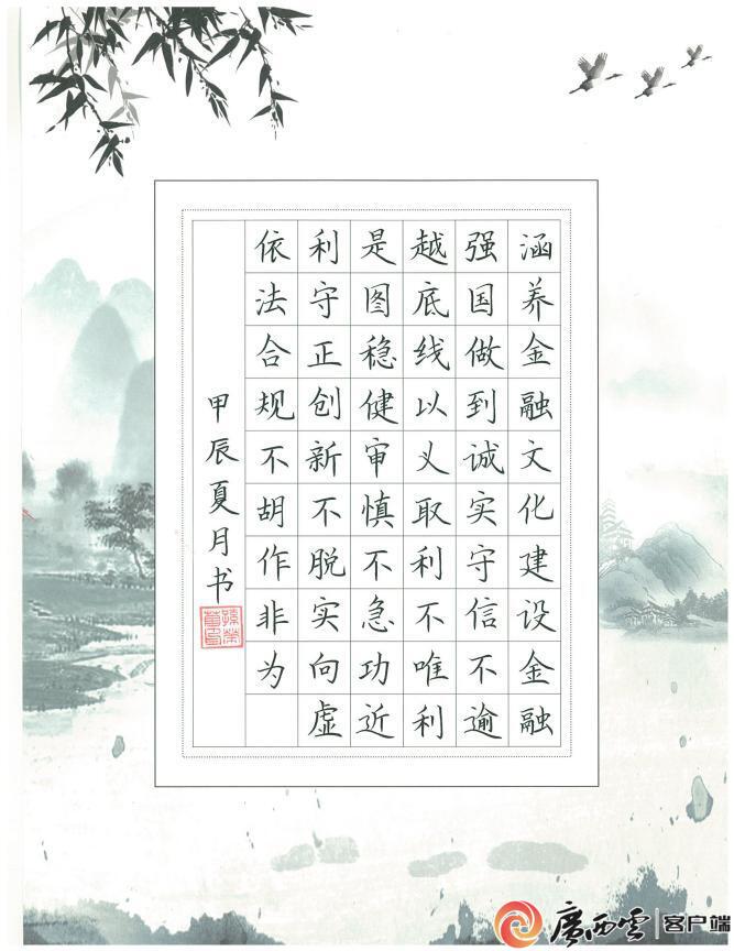 员工投稿的“中国特色金融文化”主题书法作品。兴业银行南宁分行供图