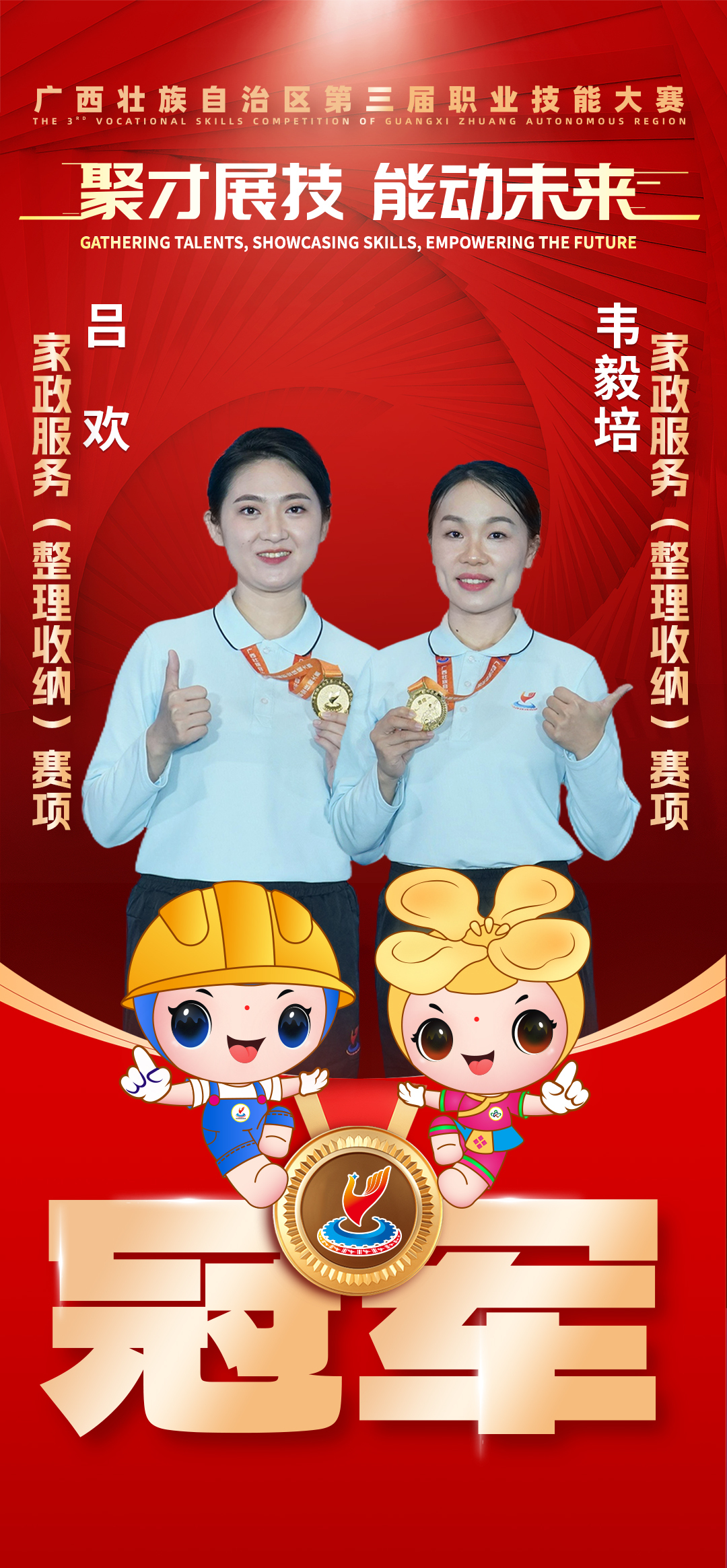 家政服务(整理收纳)赛项冠军吕欢、韦毅培。