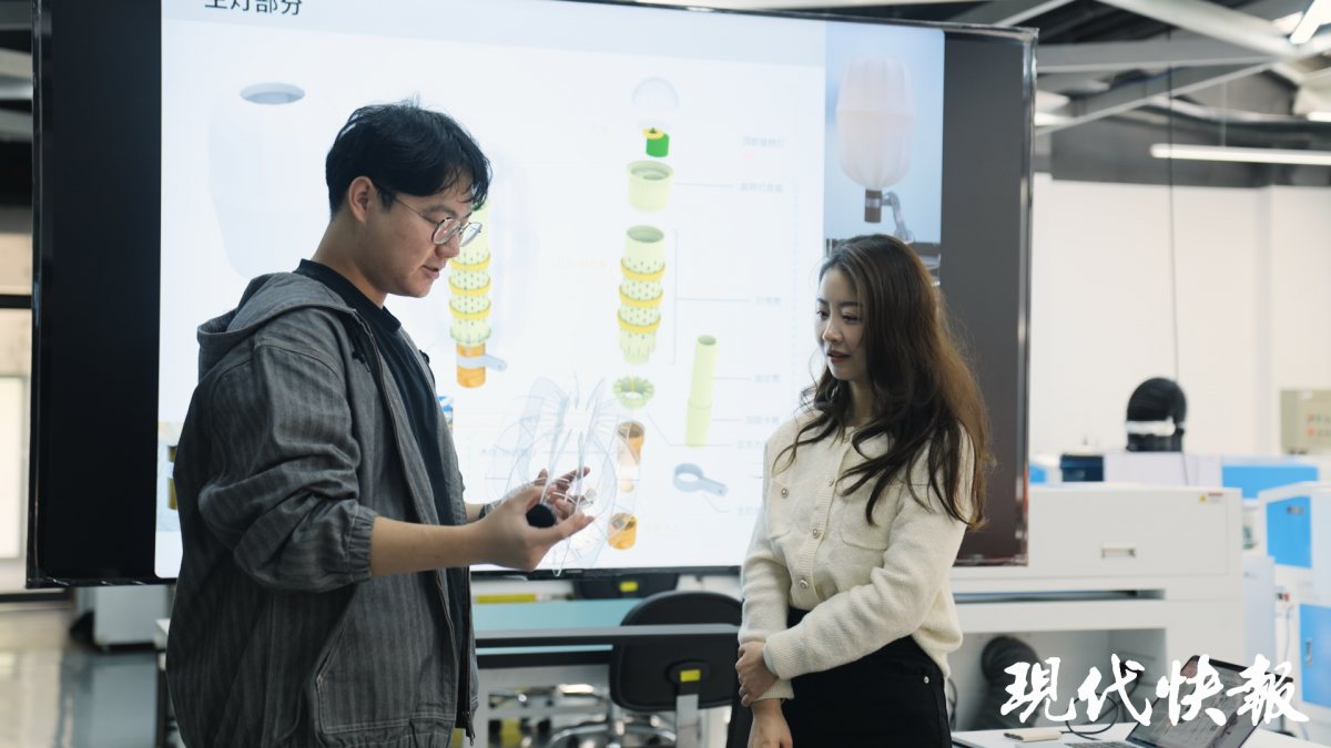 吴冬玥(左) 走进工业设计学院,艺术的氛围扑面而来,一台台3D打印机和激光切割机,也为实验室内增添了科技感。“有些人会好奇,工业设计怎么和文化相结合,其实这一点也不矛盾。”吴冬玥说,上大学之前,他就对传统文化很感兴趣,他的家乡常州文脉悠久,常州梳篦、留青竹刻、金坛刻纸,非遗手艺惊艳世人。