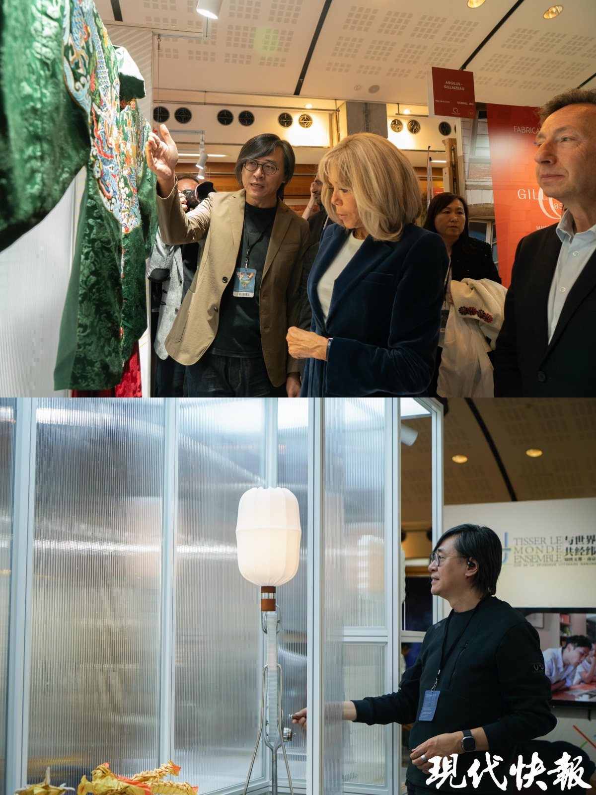 设计的“跨文化解读”,延续中国文化之美 目前,这组落地灯都正在外展出,更成为前不久2024“中国南京周”“锦绣文都·与世界共经纬”艺术展览的打卡点,连法国第一夫人布丽吉特·马克龙都为之点赞。作品的备受认可让吴冬玥发现,中华优秀传统文化就是链接工业设计与文创的一道大门,如何把横平竖直的线条转化成“烟火气满满”的日用文创,这是留给年轻设计师的一道题。