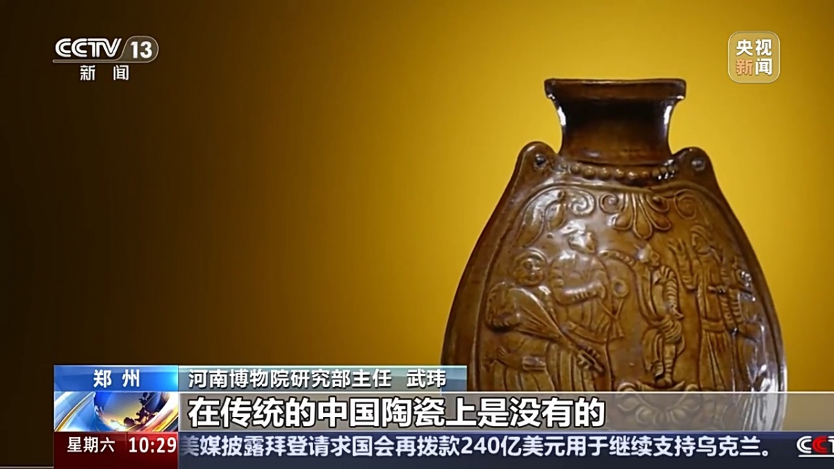河南博物院研究部主任 武玮:这种题材实际上在传统的中国陶瓷上是没有的。北朝的时期整个社会对它的一种崇尚或者一种喜好,才会出现这样一个题材,整个中西方的交流在深入发展。