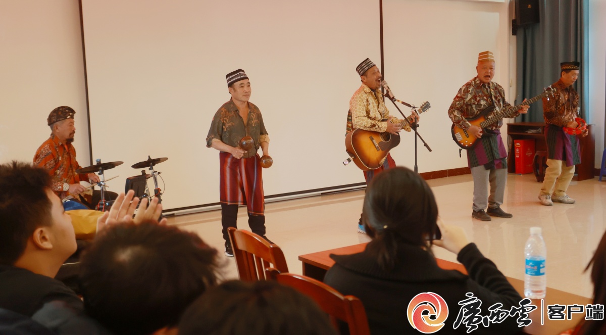 侨乡乐队为学生弹唱印尼民歌。