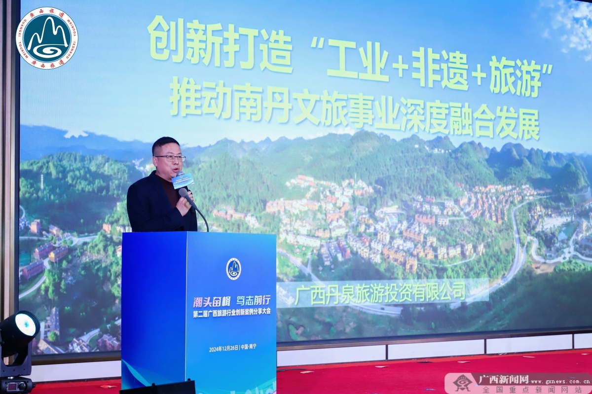 案例分享。广西旅游协会供图 在案例分享环节,《“工业+非遗+旅游”创新融合发展新模式》《北海坐坐城市旅行1+N项目》《石祖禅茶园带动文旅+乡村振兴+乡村旅游》《发挥旅游+作用,积极探索系统化研学旅游发展之路》《让非遗带着营销潮玩》5个案例代表进行了经验介绍。同时,活动还邀请了入选第六届“中国服务”·旅游产品创意案例的三位代表进行经验分享,为广西旅游发展提供经验借鉴。为进一步激发春节黄金周旅游市场的活力,活动同步启动了“我的家乡有年味 过年就到我家来”2025年全国文化旅游春节大联动活动。 附:40个旅游行业创新发展案例名单