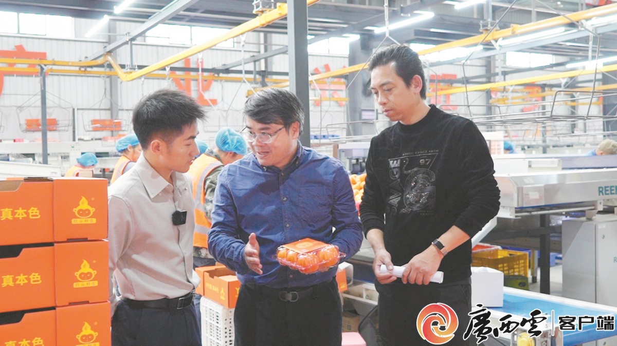 记者在广西鸣鸣果业有限公司东威分选厂看到,分选线上,工人和机器忙碌地运转,按照沃柑的果径、品相开展分类、打包工作。
