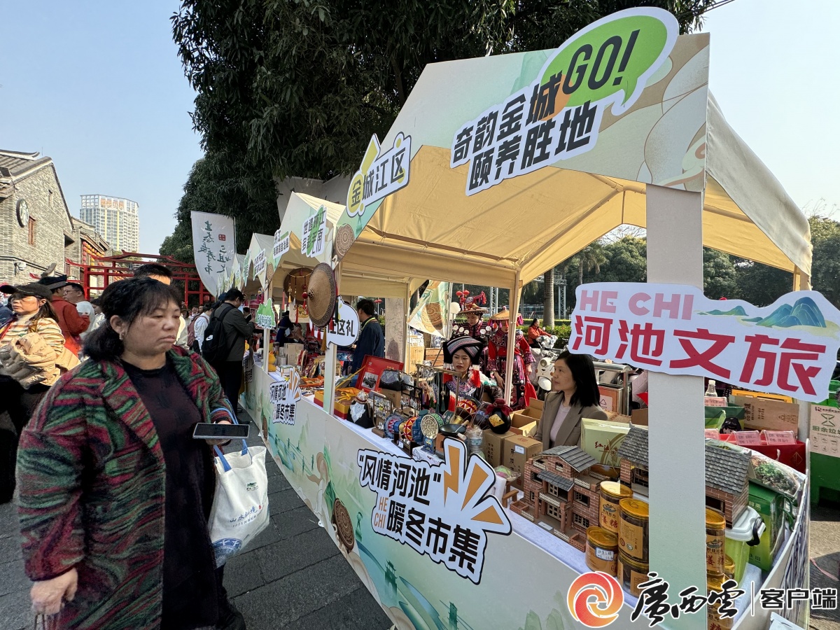刘三姐猪肉条、南丹朵努非遗首饰、都安茶米花、罗城山野葡酒、手工玉米糖、巴马瑶药养生锤……“风情河池”暖冬市集上河池特色产品琳琅满目,现场人潮涌动。2025年1月19日,由中共河池市委员会、河池市人民政府主办,中共河池市委员会宣传部、河池市文化广电体育和旅游局承办的2025年河池民族文化旅游推广季暨“山水秘境,风情河池”文化旅游推介活动在首府南宁三街两巷历史文化街区拉开帷幕。
