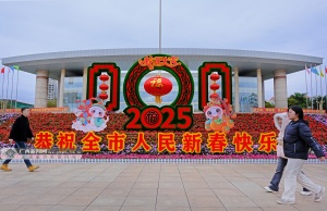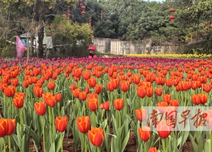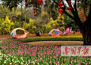 1月27日,2025桂林新春郁金香花展在桂林訾洲公园开展。本次花展共展出45个品种12万株郁金香,同时还摆放有其他品种时花9万多盆。在訾洲公园诗画广场和大草坪,各色郁金香把这里变成五彩花海,红色、白色、粉色、紫色、黄色……在阳光照耀下,郁金香绚丽夺目,营造出热烈的春节氛围。据了解,本次花展在布展方面首次将传统大型花灯造型与郁金香花海融合,大型的“春”字花灯、花篮花灯、鱼花灯、油纸伞花灯等造型融入郁金香花海,勾勒出精美的年俗画卷。记者 唐晓燕 摄(广西云-南国早报)
