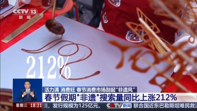 消费市场刮起了“非遗风”。出行平台数据显示,春节假期“非遗”搜索量同比上涨212%,“非遗体验”搜索量上涨387%,“非遗手工”搜索量上涨790%。传统非遗体验深受年轻游客喜爱,近4成非遗搜索者为“00后”。