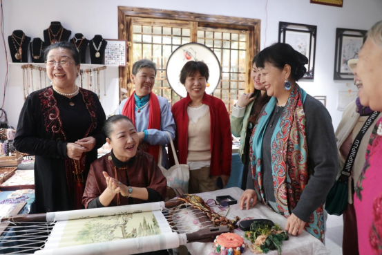 “苏绣是我的‘老本行’,来北海之后,发现疍家刺绣独具特色,就试着让苏绣和疍家绣‘牵手’,没想到效果还不错,好些作品都送去参展或被订购了。”蒋艳玲来自河北,她将苏绣、北海疍家绣以及海洋文化巧妙结合,制作出了不少别具一格的手工艺品。蒋艳玲说,刺绣每针每线都是文化对话,大家围坐探讨针法时,仿佛看见文化的浪花在指尖交会。