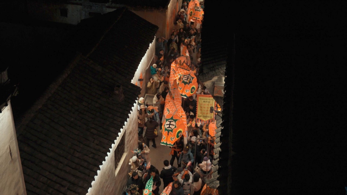 “每当看到红鲤鱼成群结队出现的时候,就一定是春节。” 在锣鼓声、欢笑声、相机咔嚓声中,嬉鱼灯流光溢彩,在古村小巷里穿梭游动。游客、村民舞动着形态各异的鱼灯,互道“元宵节快乐”,这是新年诗意而温暖的瞬间。