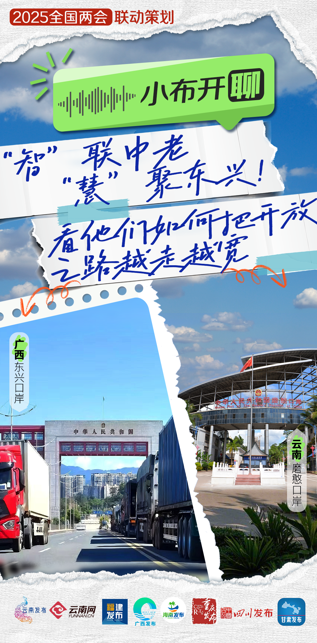 新闻眼春回大地,万象更新。在2025年全国两会召开之际,云南发布、云南网联动广西发布、福建发布、海南发布、重庆发布、四川发布、甘肃发布,重磅推出“小布开聊”全媒体联动报道,聚焦那些关乎经济发展、科技创新、生态保护、民生福祉等领域的动人故事与深刻思考,带大家感受身边美好的变化,一起奔赴充满希望的新征程!
