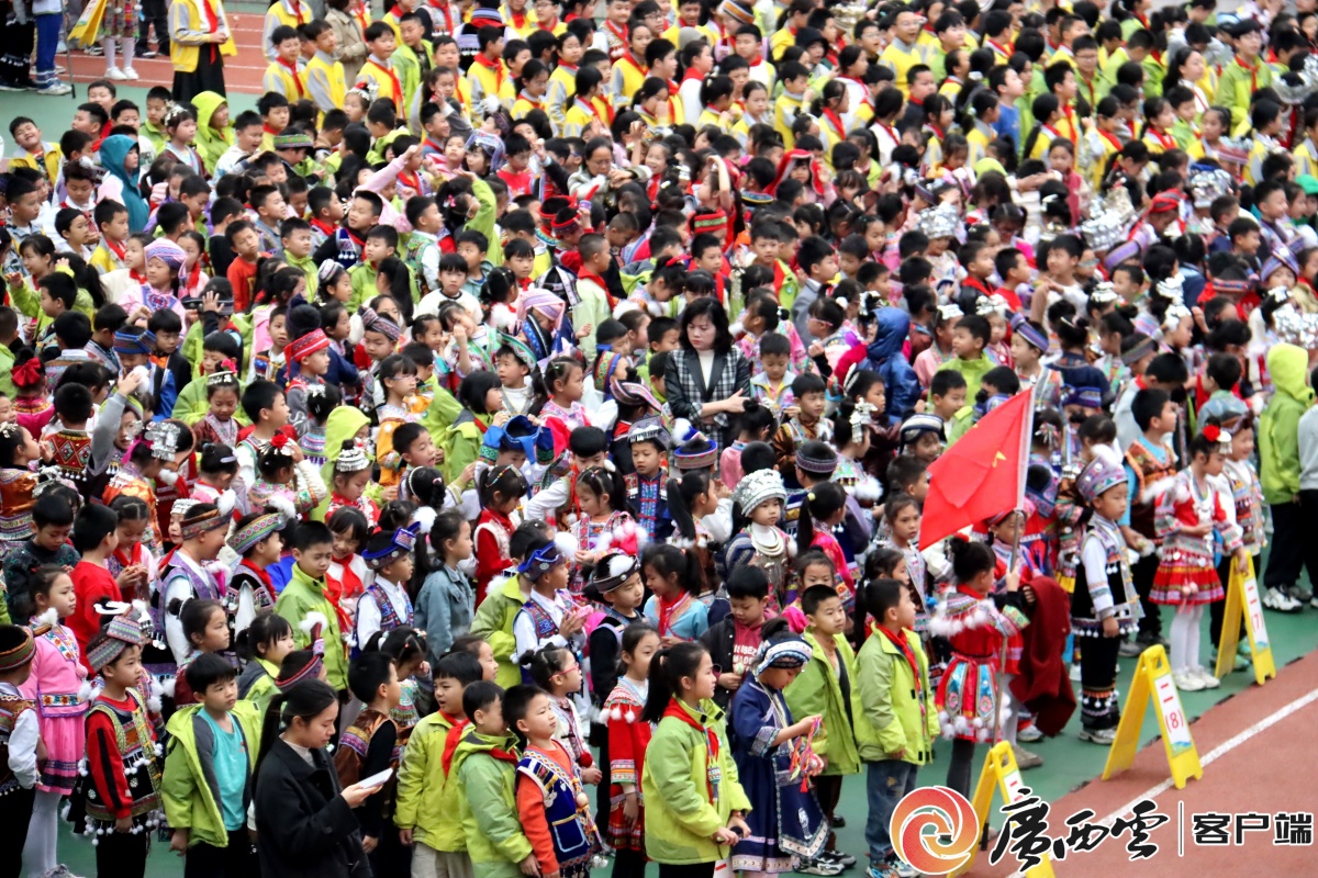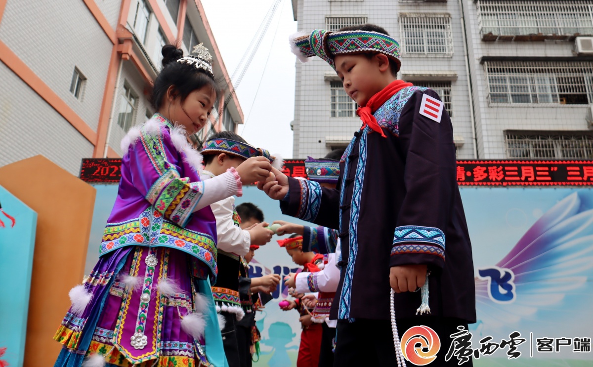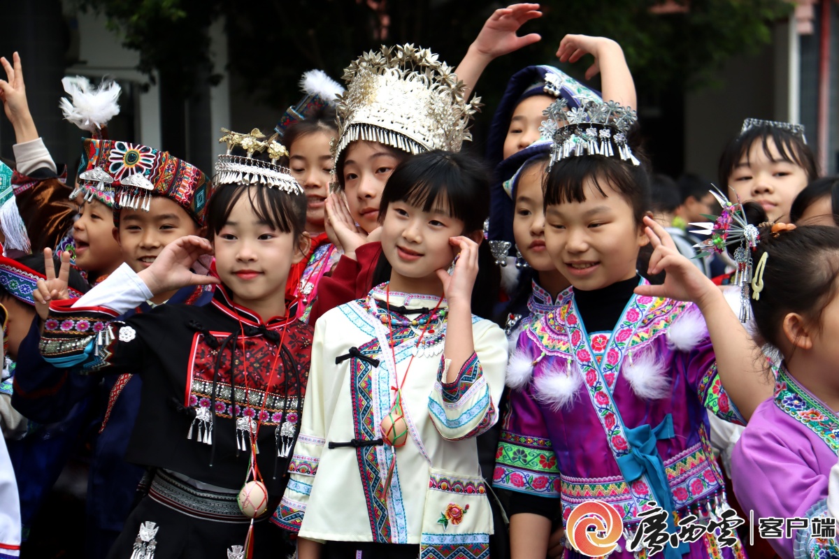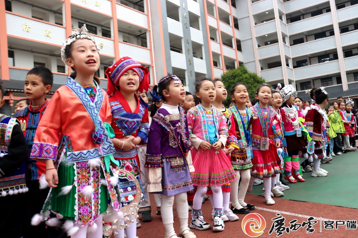 活动现场。 3月28日,在融水苗族自治县第三小学的校园内,全校师生用一场沉浸式民族文化体验,让传统节日广西三月三焕发新生机。 伴随着欢快的民族音乐,一场别开生面的民族服装秀正式开场。老师和学生们换上汉、壮、苗等多个民族服饰走上舞台,他们步态轻盈,百褶裙的层层褶皱如涟漪般荡漾,汉族交领襦裙的广袖舒展间尽显华夏风韵,将服饰之美与文化之魂完美交融。 在随后的“山歌传唱”环节中,孩子们在老师的指导下,用稚嫩却清亮的嗓音唱起改编版的“刘三姐阿牛哥山歌”,让广大师生进一步感受传统文化的魅力和科技的进步。 在碰彩蛋环节,同学们紧握着自己精心画好的民族纹样彩蛋,小心翼翼地与对手的彩蛋相碰,希望碰出好运气。 “我今天不仅学会唱山歌,还和同学们一起玩碰彩蛋游戏,真的非常开心。”四年级学生覃铭赛兴奋地说。 “我们学校非常注重民族融合发展工作,今天举办这个活动,也是希望老师和学生们能够体验和感受广西三月三的浓厚氛围。”融水第三小学大队辅导员潘婕婕表示。 据了解,为了丰富校园文化生活,弘扬民族传统文化,融水通过举办“传承壮乡情多彩三月三”为主题的系列活动,展现浓郁的民族风情,拉近不同民族之间的文化距离,促进文化的交流与融合。