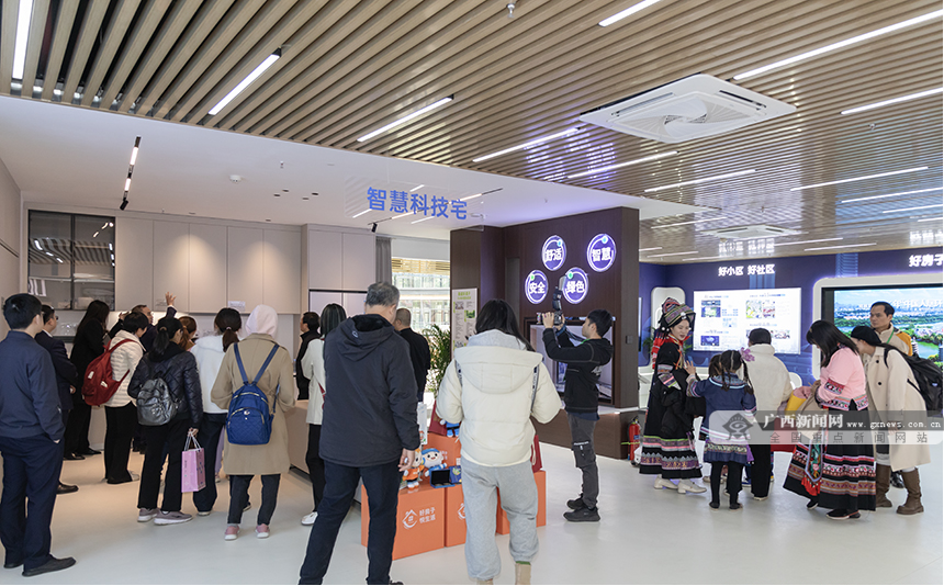 广西“好房子 悦生活”住房超市。 “好房子 悦生活”住房超市展厅共设“壮美广西宜居宜游宜业”“家筑风景里八桂有好房”“智慧科技宅”“住房政策与市场AI咨询”“好小区好社区”“房源智慧导览”“好房子 悦生活直播间”“好城区”等8个区域。 “智慧科技宅”是一个可以实现全屋智能联动的科技宅体验区,通过声控、面板遥控、场景设置、手机APP等多种方式控制室内照明、空调、梳妆台,以及消毒柜、洗碗机、影音娱乐等设备。床可以折叠、电视墙可以转动,在一个有限的空间里,实现多种空间模式变化。此外,“智慧科技宅”还接入了智慧居家安防系统、AI烹饪智能体、抽屉式洗碗机和消毒柜一体机等,消除安全隐患、生活也更舒适便捷。 “住房政策与市场AI咨询”“好小区好社区”展区,以“智慧住建”为载体,推动好小区、好社区建设。居民可通过平台中“六个码上”服务体系,足不出户办理物业、住房保障以及水电气网联合报装等相关业务,切实提升居住品质和智慧韧性水平。城市运行管理服务系统,为城市管理提供大数据分析、AI决策依据,同时结合城市信息模型、城市更新等工作,不断提升城市宜居、智慧、韧性水平。 本次住房超市启幕活动与“广西三月三·八桂嘉年华”文化旅游消费品牌活动同步进行,在“好房子 悦生活”直播间,采用“主场+现场”的方式,联动14个设区市同步开展广西三月三期间的住房促消费活动,自治区住房城乡建设厅有关部门、房地产行业相关专家以及企业代表等做客直播间,解读推动房地产止跌回稳相关政策,帮助购房者更好理解政策内涵。