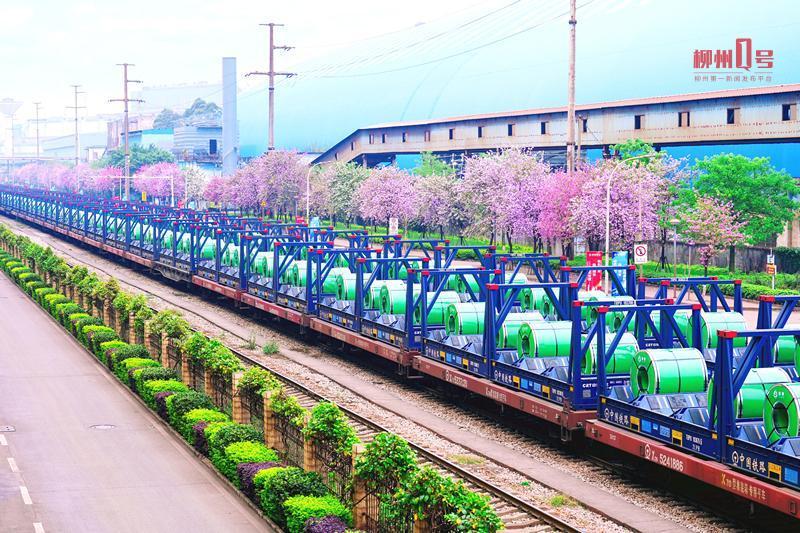 柳钢钢卷与洋紫荆形成线条美。通讯员 梁波 摄 柳州市还大力推行绿色制造 多维度助力工业领域实现碳达峰碳中和目标 推动产业转型升级 实现绿色发展