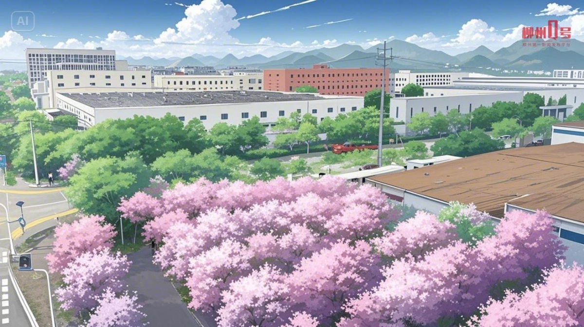 在柳工挖掘机的铿锵节奏里 一树树洋紫荆的粉色花瓣 轻轻飘落在机械臂上 ——这是属于柳州的硬核浪漫 那么,如果用动漫的方式打开这样的柳州 会是什么样子 记者用AI技术进行了尝试 近日,柳州30万株洋紫荆进入盛花期 鳞次栉比的园区厂房 金属质感的汽车和机械 还有钢筋铁骨建造的各式工业建筑 …… 在洋紫荆淡粉色花朵的映衬下 构成了一种刚柔并济的“混搭美学” 刷新着人们对传统工业城市的想象