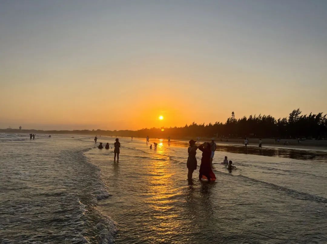 海边的落日独具观赏性 分享几个海边日落观赏景点 以南宁为例 最快51分钟 即可到达防城港北站 “五一”假期 不妨坐上动车 去防城港体验“追落日”的浪漫 ↓↓↓ 白浪滩 白浪滩地处江山半岛东北部 站在沙滩上可看到一片片浪花翻涌 傍晚太阳缓缓西沉 将光芒投射在海面上