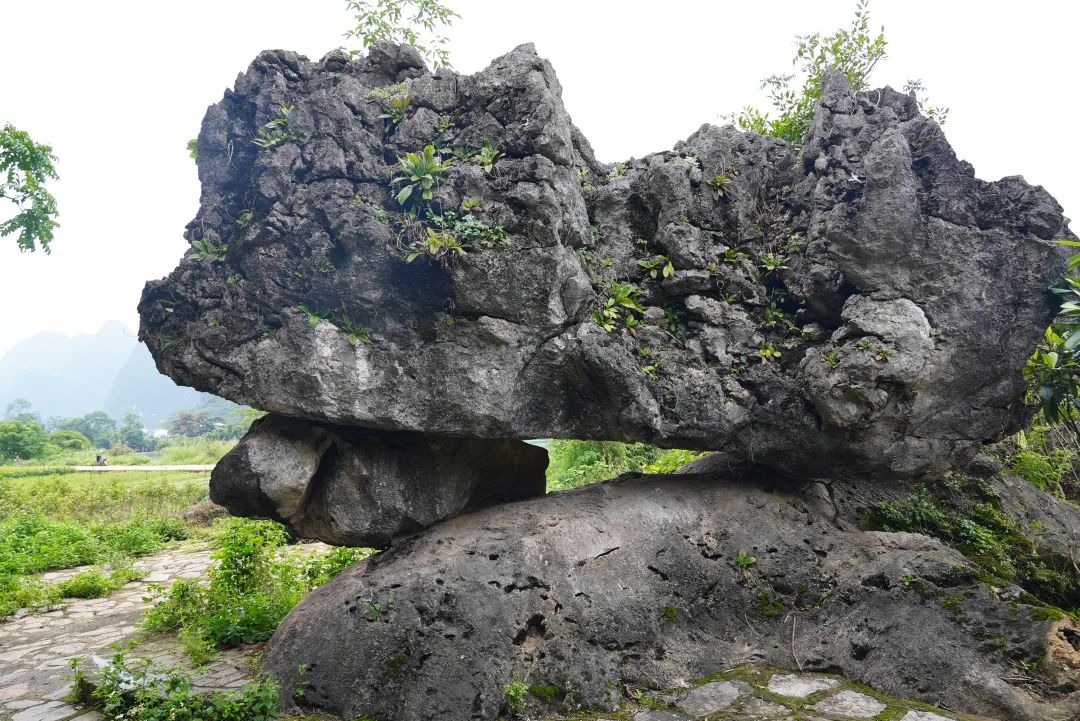 “遇龙石”距离遇龙桥不远,形态酷似龙珠被含在龙嘴里。记者 邢刚 摄 “2014年,我们想做‘遇龙河竹筏漂流节’,但不知道怎么做,于是召集村民集思广益,大家也积极建言献策。”封志伟说,当时决定,结合当地“龙”文化做文章。“最终敲定用竹筏串联成龙,撑起黄伞模拟龙鳞。” 接着,村委带头筹集12.8万元,党员干部和热心村民组成400余人的志愿者队伍义务参与筹备。当时的村干部朱继权辗转找到自治区级非物质文化遗产恭城彩扎传承人张桦,请他制作龙头。