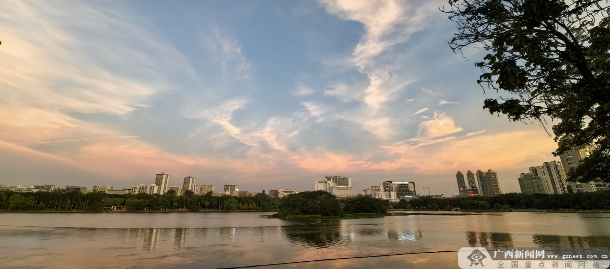 图为在南湖公园拍摄的晚霞。广西云-广西日报记者 陈丽婕 摄