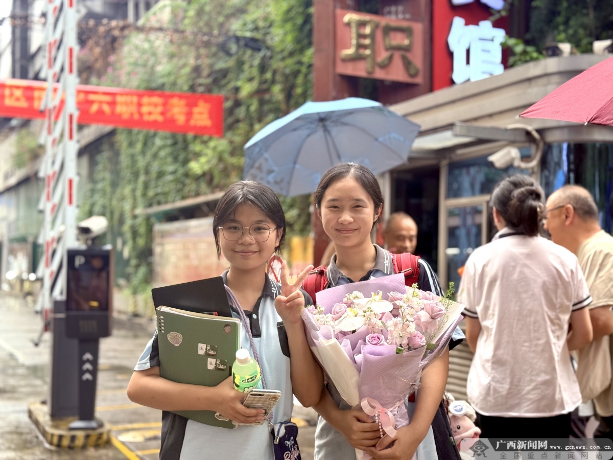 6月9日,在南宁市第六职业技术学校桃源校区,结束最后一科生物考试的考生们捧花合影。广西云-广西日报记者 万一鸣 摄 “终于考完了!”考试结束铃声敲响,在南宁市第九中学考点,第一个冲出考场的男生振臂高呼,话音未落便被兴奋的同学们高高举起,现场气氛瞬间被点燃。考生梁同学眼眶微红地说:“想想高三这一年熬过的夜,现在真有点想哭。”另一名女生哼唱着欢快的旋律走出考场,被问及考后心愿,她开心地说:“要去吃遍南宁中山路的美食!” “恭迎知名跳舞‘大神’回归!”在南宁天桃实验学校(翠竹校区)考点外,一名女生的5位好友为迎接同样热爱“二次元”的她,特意准备了定制的欢迎横幅与彩色海报板,用她最喜爱的方式,为这段热血高中生涯画上句点。 “每个孩子都是家庭的未来,我想在这一刻,没有胜负之分,只有喜悦和收获的幸福。”南宁市第九中学的沈老师感慨。考生家长周先生望着欢呼的人群,欣慰地说:“高考是孩子们用汗水铸就的一枚成长勋章,而生活才是真正的旷野。”此刻,属于他们的星辰大海,才刚刚开启。