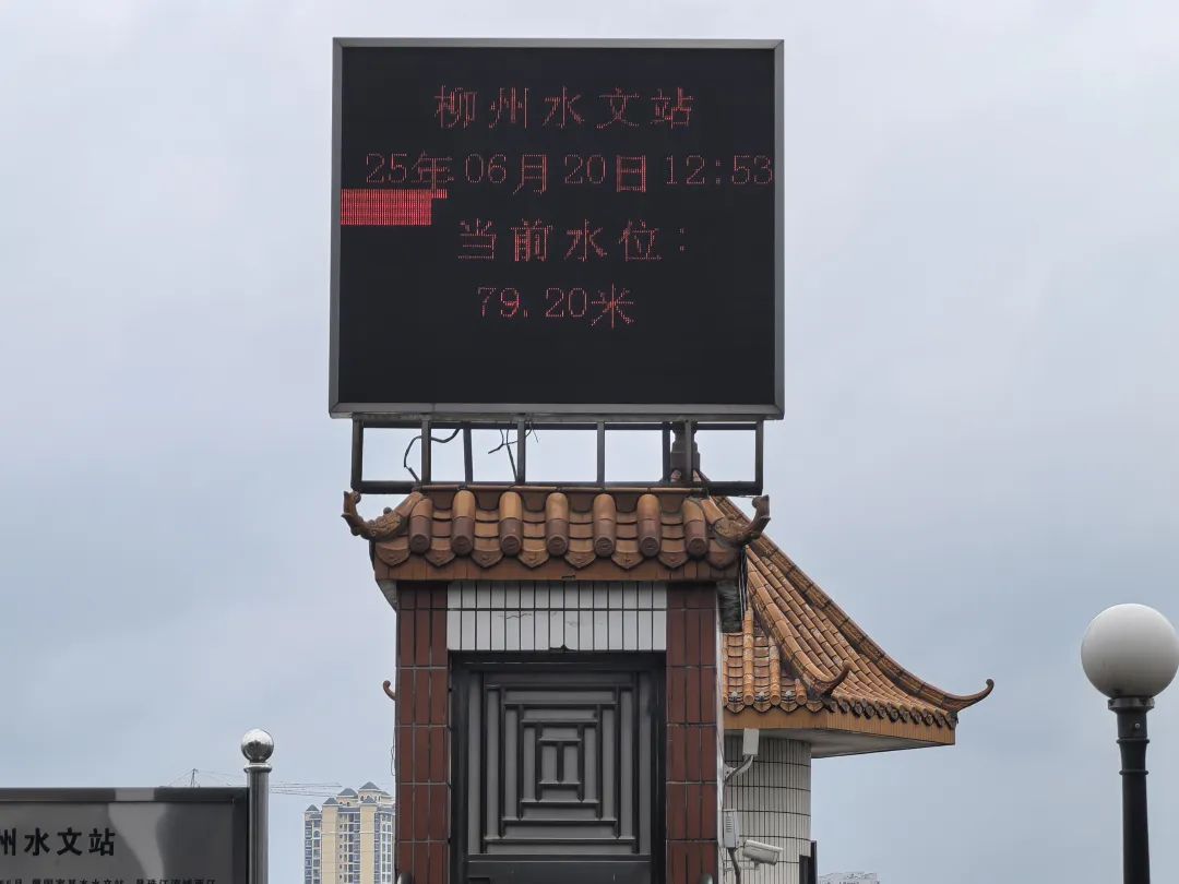 6月20日13时,柳州市防汛抗旱指挥部发布2025年柳江河汛情1号公告,据柳州水文中心测报,柳江柳州水文站水位于6月20日12时40分涨至79.2米(亲水平台水位),相应流量为10400立方米/秒,预计6月20日20时前后涨至80.5米(警戒水位82.5米),水位仍在持续上涨。请各单位、各部门密切监视水情发展变化做好各项洪水防御工作,请沿江有关单位及社会公众关注洪水变化,加强防范,提前转移避险。 早前报道: 洪水进家!柳江水位将涨至79.2米!多地发布洪水蓝色预警!强降雨持续,风险加剧→ 6月20日一早,柳江河水位持续上涨。12时53分,柳州水文站的LED水位显示牌显示,柳州市区柳江水位已涨到79.2米。