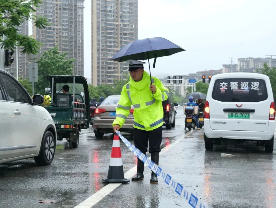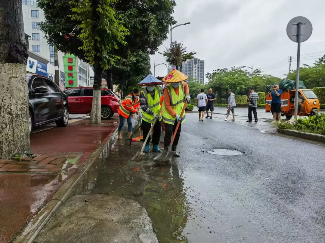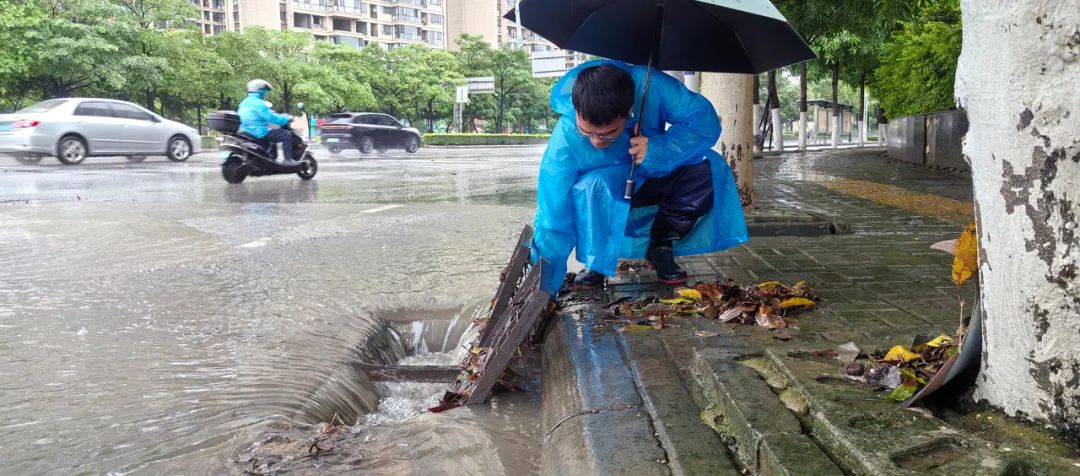 市城管局工作的人员正在清理雨水篦子上的杂物。黄艳萍 摄 加强巡逻管控 及时处置险情 本次内涝让百色城区交通压力骤增。百色市交警部门迅速行动,指挥中心民警24小时值守,对易涝点位进行实时监控,发现内涝情况及时调度警力前往处置。 “前方有积水,车辆请绕行。”在各内涝点,交警第一时间赶赴现场,在积水较深路段设置警示标识,提醒驾驶员绕行避让。部分积水路段的排水口被杂物堆积,执勤交警卷起裤脚走进水中,徒手将杂物移除,保证排水畅通。在积水较深的路段,不少车辆滞留在水中,交警及时帮助群众将抛锚车辆推至安全地带。部分小区地势较低,眼看着路面积水即将流进地下停车库,交警化身为临时“搬运工”,协助小区工作人员搬运挡水沙袋,在地下停车库大门搭起一座“挡水墙”。 “为应对本次内涝,我们共出动280余名警力加强巡逻管控,及时处置险情,我们也提醒广大驾驶员,雨天行车要‘降速、控距、亮尾’,确保出行安全。”百色市公安局交警支队直属一大队民警刘世德说。