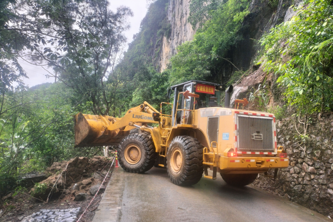 国道219线那坡县百省乡贵港新村老虎跳路段山体滑坡落石处置现场。岑晓东 摄 受连日强降雨影响,21日,田林县利周瑶族乡凡昌村田棚屯境内公路发生塌方,大量泥石堆积在路面,阻断交通,车辆和行人无法正常通行。灾情发生后,田林县交通部门第一时间组织人员和机械对塌方道路进行清理,设置警示标识,全力进行抢险工作。 田林县交通运输局公路管理所所长罗世晶说:“自进入雨季以来,我们严阵以待,每日组织20余名巡查人员分5组对重点路段、易塌方点开展不间断巡查,并实行24小时值班值守,确保第一时间发现险情并处置,目前,塌方路段抢险工作正在有序推进中。”
