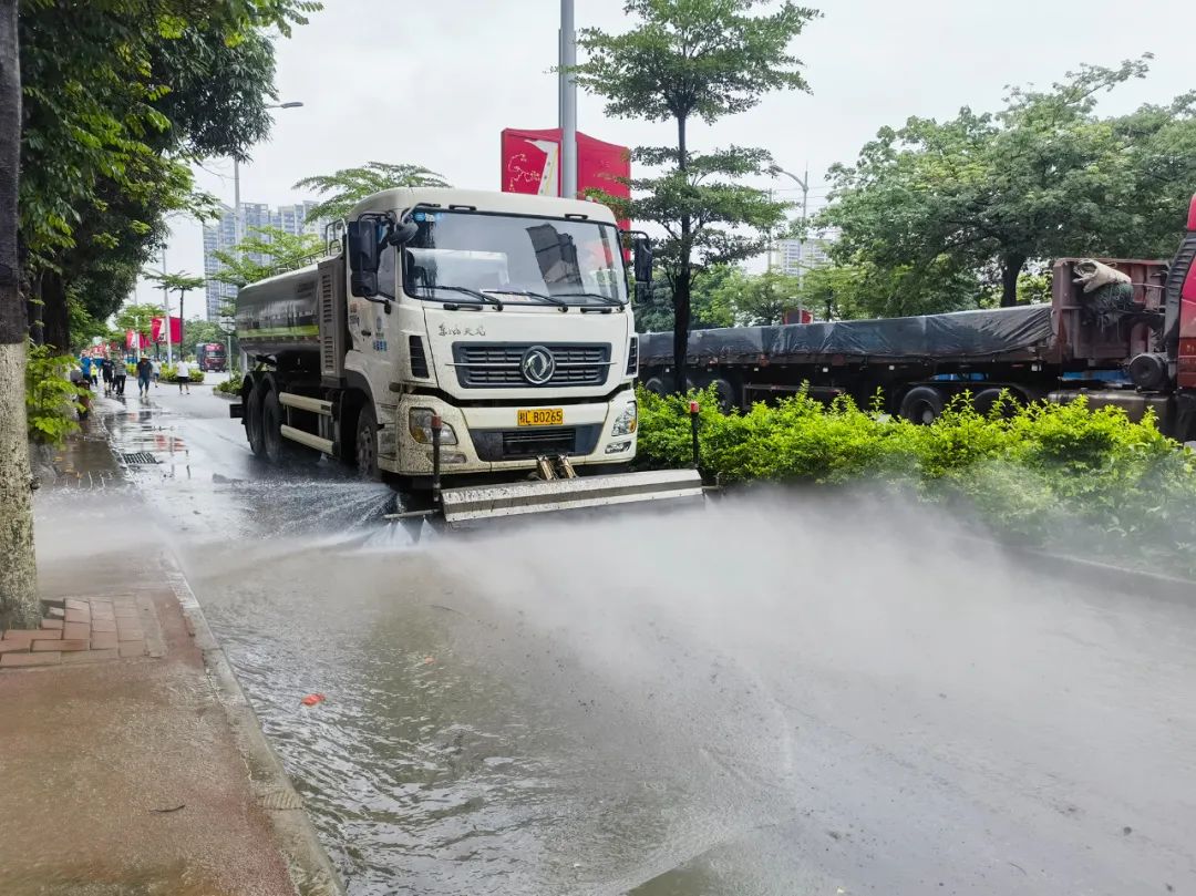 积水退去后,高压清洗车在清洗路面。梁力升 摄 闻令而动,抢修道路 除百色城区外,百色市不少县也因强降雨导致公路出现滑坡、塌方险情。相关部门闻令而动,全力开展道路抢修工作。