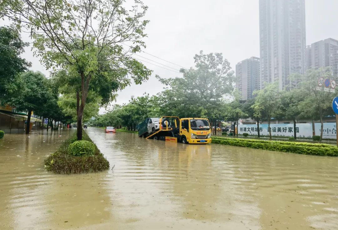 在右江区前程路,救援车正在转运抛锚车。梁力升 摄 内涝发生后 百色市交警、城管、消防救援等部门 紧急出动 全力应对内涝造成的影响 截至6月21日15:00 百色城区内涝点排涝工作基本完成 进入路面清淤环节 各条道路已正常通行 多部门紧急出动 合力开展排涝保安全 市委、市政府高度重视内涝的处置工作。市领导亲自带队,冒雨深入站前大道、祥云路、前程路等内涝情况较重的地点检查,指导排涝工作。 市领导要求相关部门要及时放置警示标识,做好排涝疏堵、防漏电工作,要保持“战时状态”,合理调配人力、物力,确保排涝顺畅、人民群众生命财产安全。 由于降雨强度大、持续时间长,市领导要求气象部门加强气象监测,及时发布预警信息;城管、住建等部门要时刻关注降雨变化,加强对城区排水设施的检查巡查,及时消除隐患;应急部门要完善应急预案,加强应急物资储备,确保关键时刻人员调得快、物资拿得出,最大限度保障人民群众生命财产安全。
