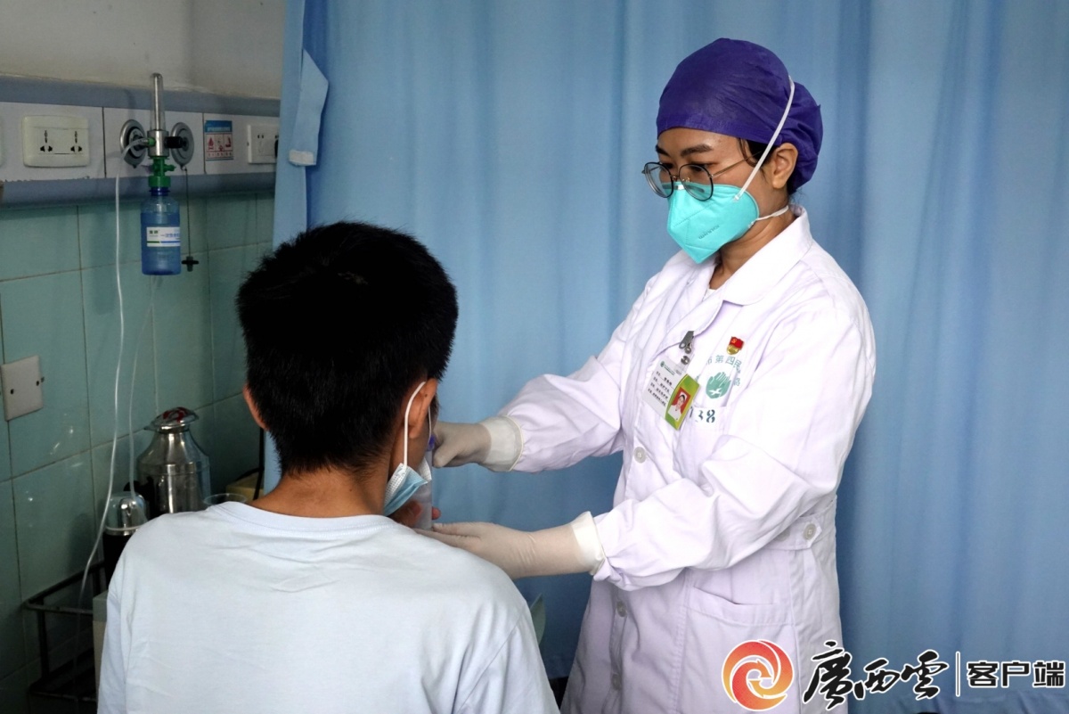 梁明坤带着学生为患者看病。广西云-广西日报记者 古秀芳 摄 6月28日早上8时许,梁明坤的诊室外已排起长队。诊室内,梁明坤为患者把完脉,又俯下身查看患者的病处,一边按压一边交流病情,随后给患者开好药方。中午,他会趁着人少的间隙,匆匆吃完饭,又继续接诊。“患者从外地赶来不容易,我不午休,就可以多看几个病人,可以让他们少奔波一次。”梁明坤解释。 2006年,在广西中医药大学读本科的梁明坤加入了中国共产党,在党员师兄的影响下,他立志要成为“老黄牛式”的医生:踏实干事,不提要求;以身作则,给后辈做个好榜样。2010年,梁明坤赴日本攻读医学博士,毕业后在国外工作了一段时间。2015年,他毅然放弃日本优渥待遇选择回国。“中医最好的沃土在中国,我是一名党员,理应回国传承中医,回家乡服务群众。”梁明坤说。 回国后,梁明坤入职瑞康医院,一心投入临床工作。“医院领导知道我是留学博士,提出让我到科技部负责医院的学科建设。我当时只提出一个要求:“负责学科建设没问题,但也要让我兼顾出门诊为患者看病。”梁明坤回忆从前感慨万千。到国医堂初诊时,仅有20位患者挂他的号,但从第二次出诊起,他的号便被挂满,还得加号。如今,他每次门诊,都要接诊患者近百人。即使非出诊时间,若有患者找到他,他也会尽量为其看诊,还经常利用周末的时间下乡义诊,足迹遍布全区20多个市、县、乡、村。 如今,诊室的晨光里,梁明坤俯身问诊的身影旁,总围绕着专注学习的年轻人。带教研究生、指导规培生、接收进修医生……在他看来,让更多的“老黄牛式”医生成长起来,是守护家乡百姓健康的另一份沉甸甸责任。于是,每一次出诊都成了课堂,在望闻问切间,在药方斟酌时,中医的种子在年轻一代心中悄然传承。 “要做冲在最前面的那个人!” ■广西云-广西日报记者 罗婧 通讯员 汪婕 6月27日,记者在南宁市第四人民医院结核病科二病区见到该病区副护士长曾春梅。年仅37岁的她,已迎战过人感染H7N9禽流感、甲型H1N1流感等传染病以及新型冠状病毒感染等疫情。
