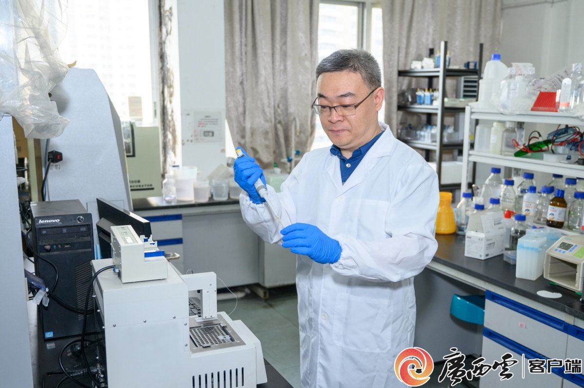 黄婷婷在进行菌群的DNA序列分析。受访者供图 2021年,黄婷婷从瑞典卡罗林斯卡医学院学成归国,放弃了国外优厚的薪酬待遇和先进的科研平台,毅然回到培养她的广西医科大学第一附属医院,扎根临床和科研一线,从事鼻咽癌防治工作。“作为一名共产党员,我深知自己的责任。”黄婷婷说,“我要把所学用来服务家乡人民,做好百姓健康‘守门人’。” “鼻咽癌在全球范围内属于罕见病,但在广西却是高发病。”黄婷婷介绍,在瑞典的博士和博士后研究期间,她将广西的鼻咽癌防治研究带到北欧,并系统学习了国际前沿技术。归国后,她创新性地将慢性疾病-微生物组研究体系引入广西,为本土鼻咽癌防治研究开辟了新思路。 回国四年来,黄婷婷带领团队在鼻咽癌研究领域取得系列重要突破:首次揭示人体共生微生物与鼻咽癌发病机制的内在关联,鉴定出20余种关键菌属;通过大规模流行病学调查,建立鼻咽癌发病与膳食结构的科学关联;发现新型鼻咽癌分子标志物,相关成果荣获2023年广西自然科学奖二等奖。2024年,她把广西的鼻咽癌-微生物研究成果再次带上国际舞台,亮相Gordon Research Conference学术会议,实现了广西科学家在这一国际顶尖学术会议上口头报告零的突破。 这些研究,都在为更早发现鼻咽癌、更有效治疗鼻咽癌、以及最终预防鼻咽癌寻找新的路径。 2024年,黄婷婷入选首批“八桂拔尖青年人才培养项目”。回顾当初回国的决定,她的语气坚定而踏实:“学成归国,是正确的选择!这里有迫切的需求,有研究的沃土。”她说,她将继续扎根在医学科学研究的第一线,努力寻找更有效的鼻咽癌防治之道,守护更多百姓的健康未来。 “不午休,就可以多看几个病人” ■广西云-广西日报记者 罗婧 早上7时45分踏入诊室,没有午休,下午看完所有病人后才离开,每周出诊3天,已坚持6年——这是广西中医药大学附属瑞康医院国医堂副主任医师、医学博士梁明坤的工作日常。2020年新冠疫情初期,他曾创下单日看诊196人的记录,作为一名党龄近20年的老党员,这位医学博士用铁人般的坚守,践行着“人民至上”的誓言。